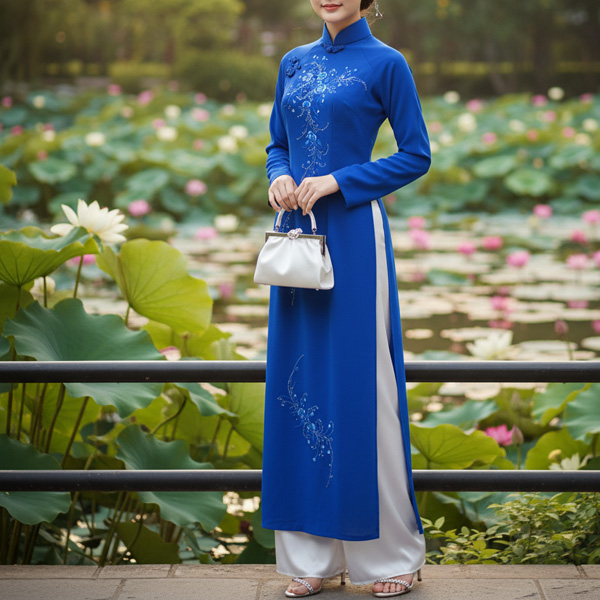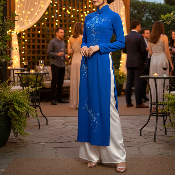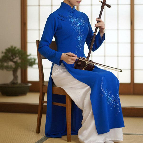 アオザイ(Ao dai)とは、丈の長い上衣と長ズボンがセットになったベトナムの伝統的な民族衣装です。