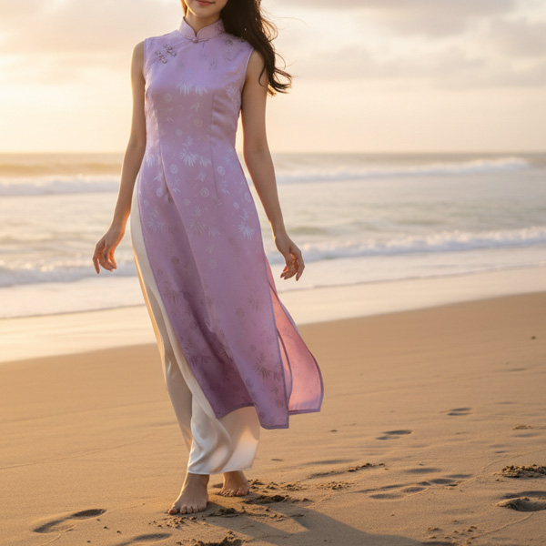 アオザイ(Ao dai)とは、丈の長い上衣と長ズボンがセットになったベトナムの伝統的な民族衣装です。