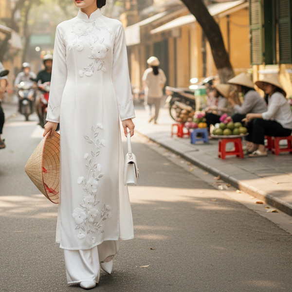 アオザイ(Ao dai)とは、丈の長い上衣と長ズボンがセットになったベトナムの伝統的な民族衣装です。